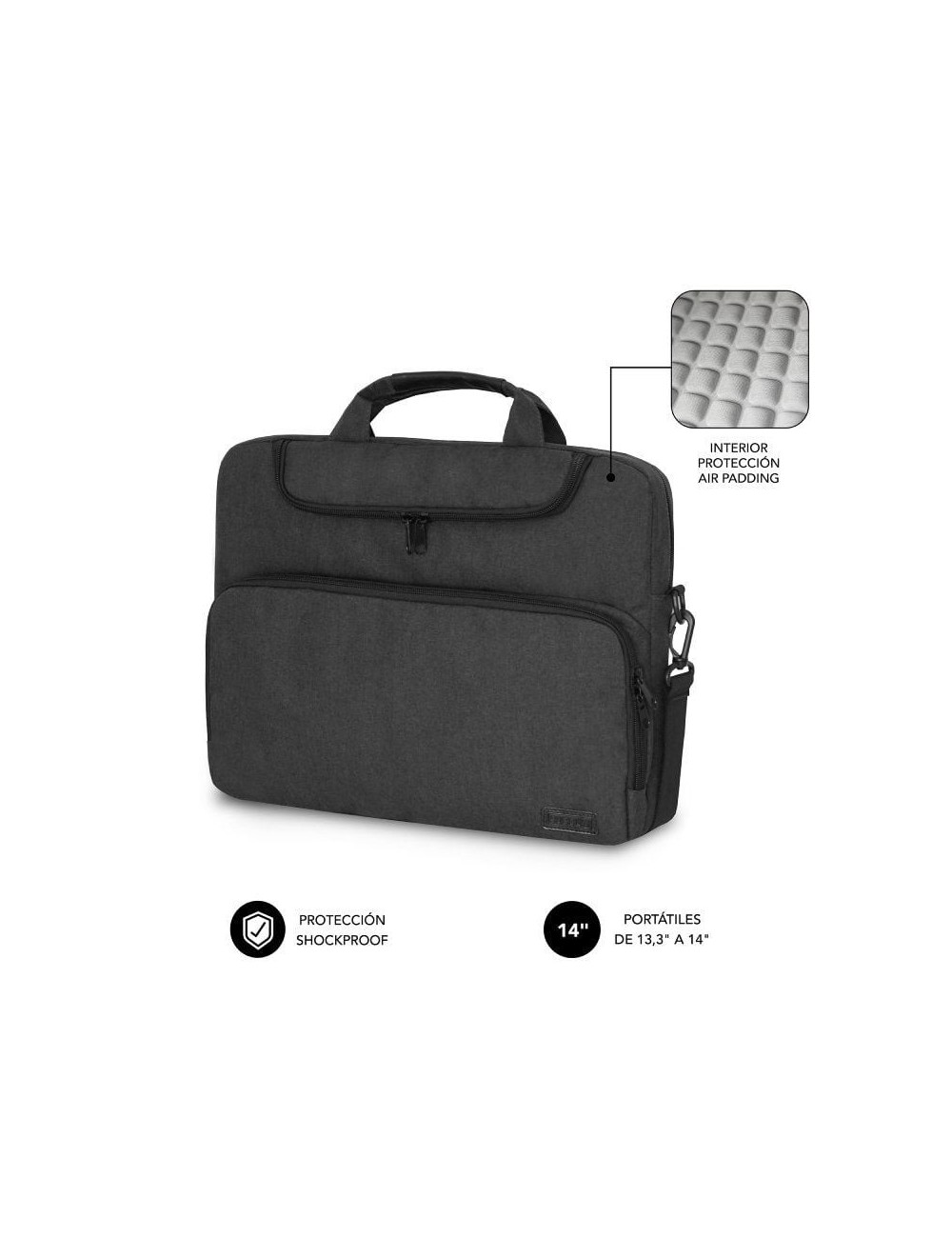 Maletín Subblim Air Padding Laptop Bag para Portátiles hasta 14'/ Cinta para Trolley/ Gris