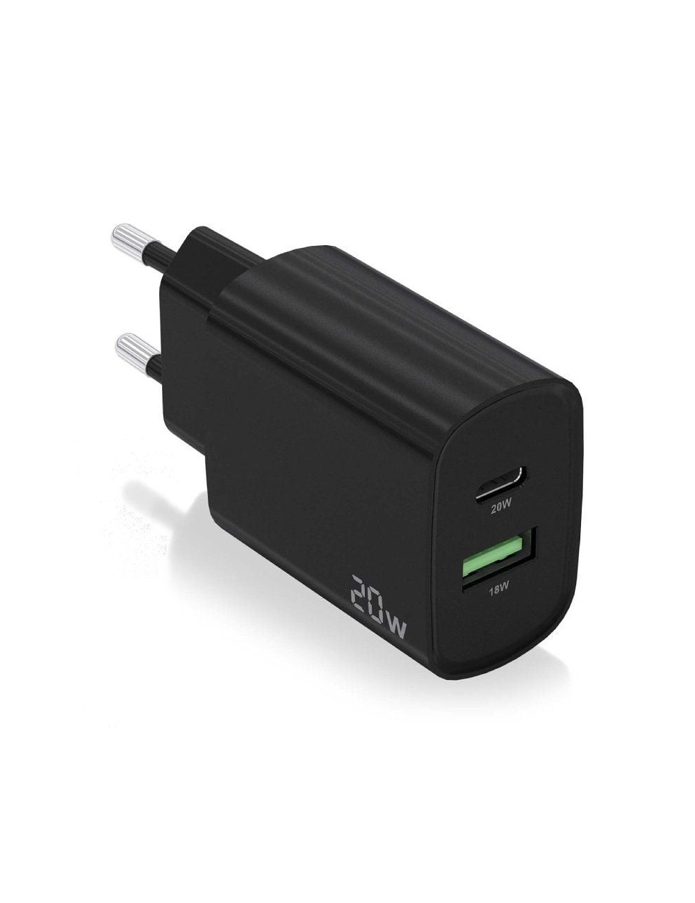 Cargador de Pared GaN Aisens A110-0912/ 1xUSB Tipo-C/ 1xUSB/ 25W/ Negro