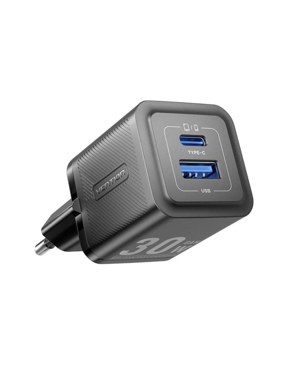 Cargador de Pared GaN Vention FEQB0-EU/ 1xUSB Tipo-C/ 1xUSB/ 30W