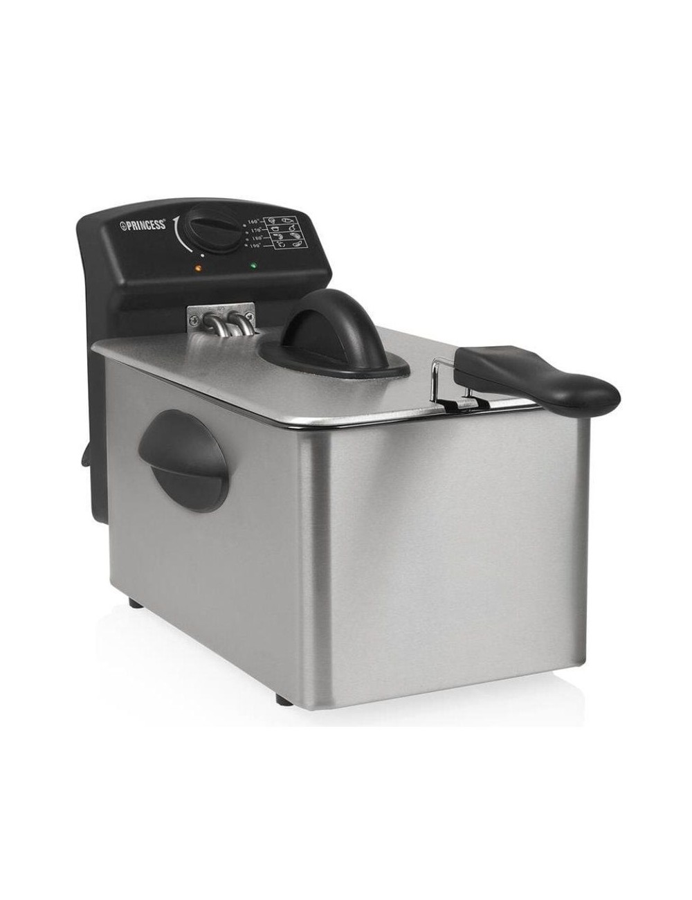 ¿Quiere preparar patatas crocantes para toda la familia? ¡Entonces los 2000 W y los 4 litros de capacidad de la freidora 182642 de Princess son lo que necesita! El termostato permite regular la temperatura de 130 °C a 190 °C. Es perfecta para preparar pollo, patatas, pescado o donuts.